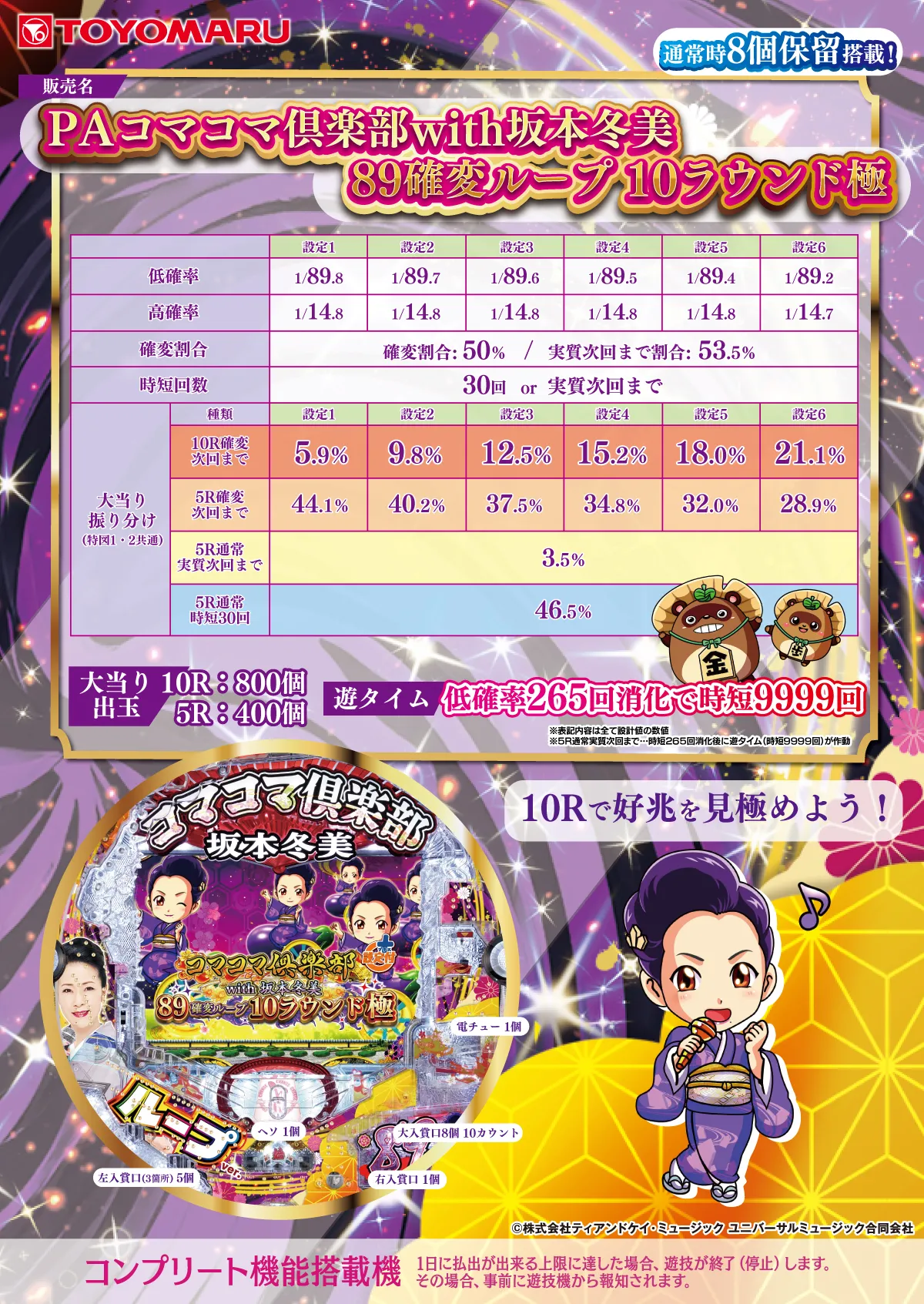 | 機種名 | PAコマコマ倶楽部 with坂本冬美 89確変ループ 10ラウンド極 |