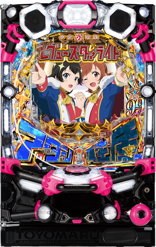 この度、豊丸産業株式会社は「P 少女☆歌劇 レヴュースタァライト99 LT3000(ダブルナイン ラッキートリガー3000)」を2025年12月22日より市場投入いたします。 人気コンテンツ「少女☆歌劇 レヴュースタァライト」が遊びやすく出玉力を兼ね備えた仕様で登場いたします。大当り確率1/99.9なのにRUSH中の大当り出玉は全て1000個以上獲得ができ、加えて出玉トリガー「追劇」が前作よりパワーUPしております。最大継続率も約77%となっており、プレイヤーも期待できる仕様となっております。 是非、導入パチンコホール様でご遊技ください。 【スペック情報】